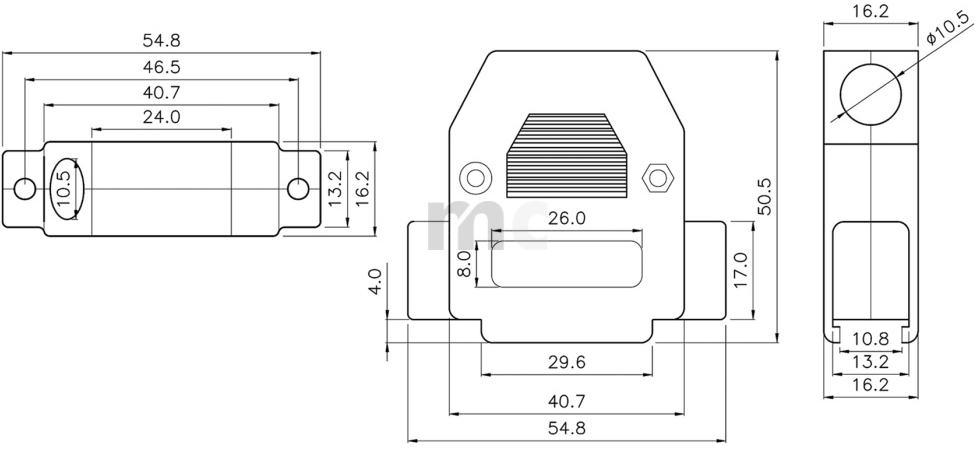 Robuste SUB-D Haube (15-polig) für beengte Platzverhältnisse